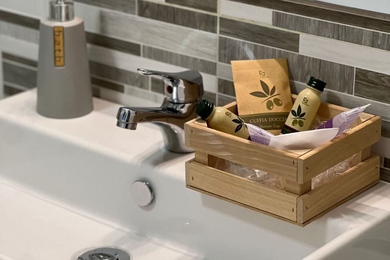bagno con doccia ed il necessario per coccolarsi dopo una giornata di rientro da una escursione per vedere le bellezze lucane