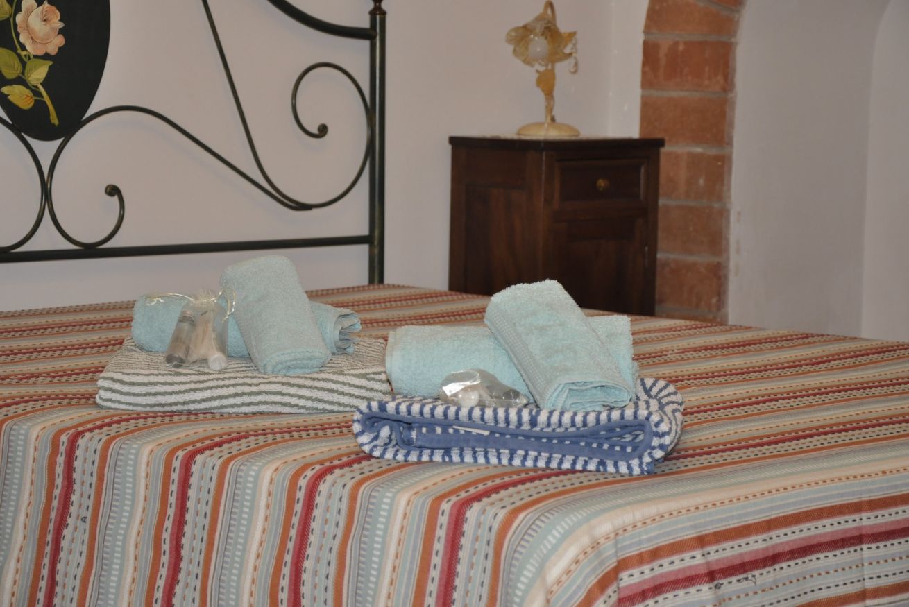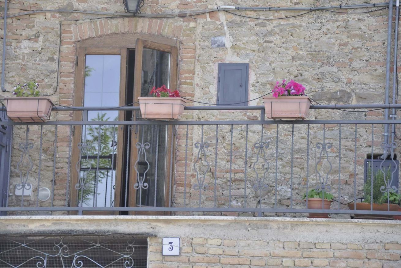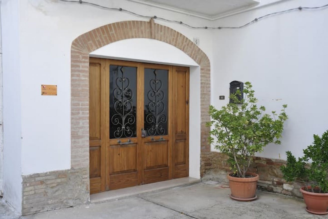 L'appartamento, posto sulla parte più alta del paese ed in pieno centro storico, si sviluppa su un unico piano terra, ha un ingresso principale privato esclusivo con un leggero gradino dovuto alla soglia di marmo, come visibile nella foto, ed un ingresso secondario, anche questo privato ed esclusivo, a cui si accede per il tramite di una scala. L'ingresso secondario è anche dotato di un ampia terrazza da cui si gode di un ottimo panorama.