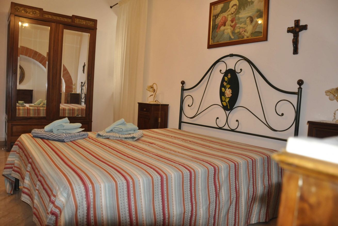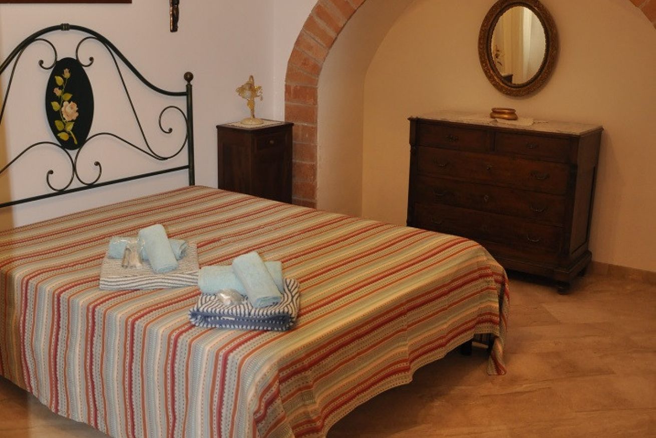 - 1 camera matrimoniale con letto in ferro battuto, armadio, cassettiera e comodini d'epoca